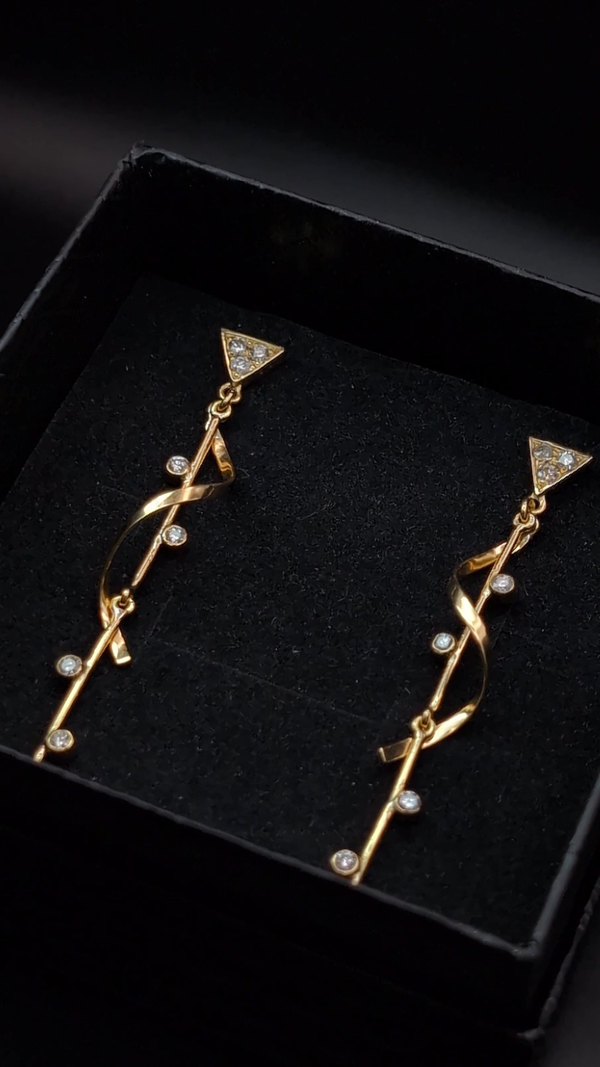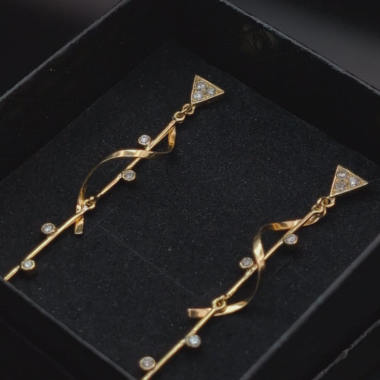 Estos pendientes largos de oro de 18 quilates han sido elaborados artesanalmente con un diseño pensado para brillar con cada movimiento. Cada detalle, desde la soldadura hasta el engastado de los diamantes naturales, está hecho a mano con precisión y cuidado.