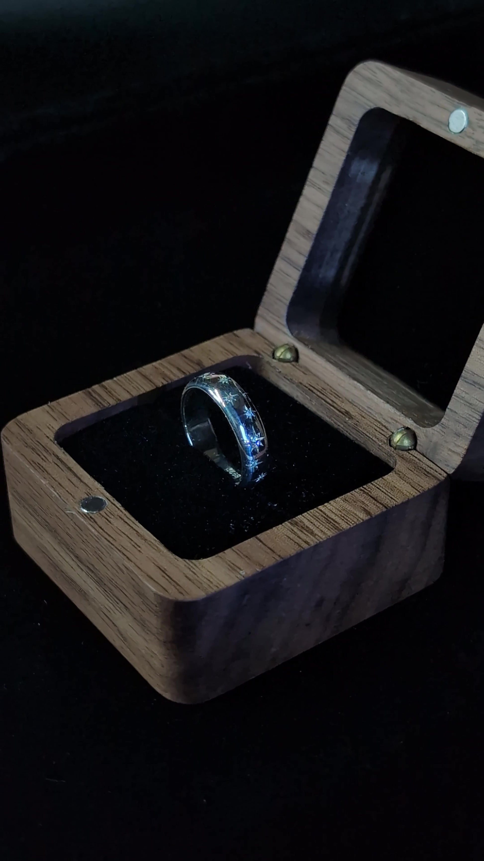 Este anillo de plata de ley 925, está grabado a mano con motivos de estrellas. En el centro de cada estrella brilla una circonita engastada, creando un contraste sutil y elegante que atrapa la luz con cada movimiento.